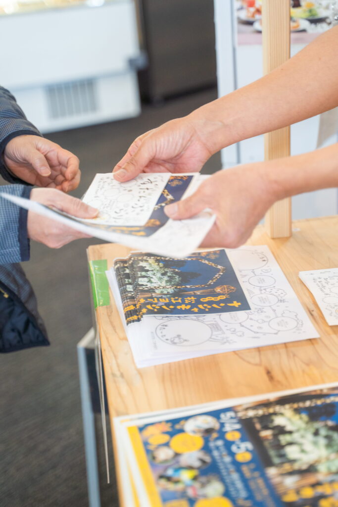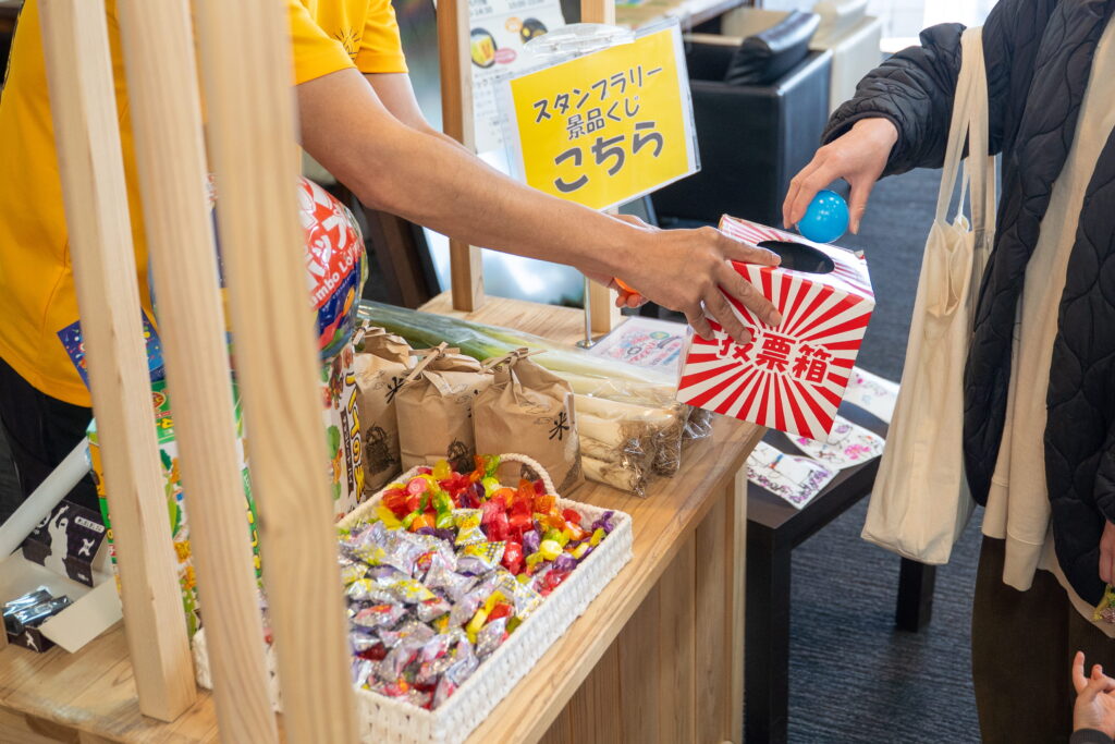 受付でスタンプラリーの台紙を配り、多くのブースを回りスタンプを集めてもらいました。