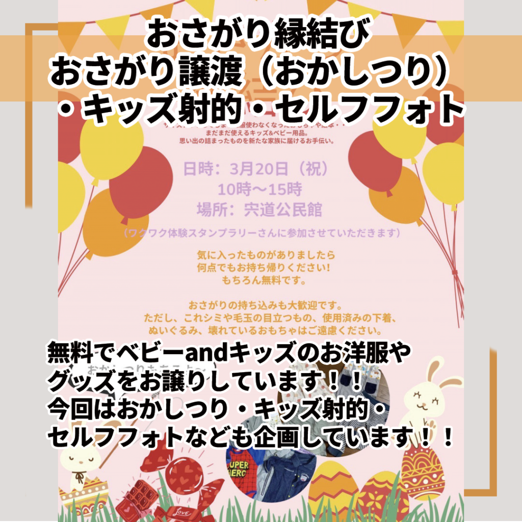 おさがり縁結び おさがり譲渡(おかしつり)・キッズ射的・セルフフォト
