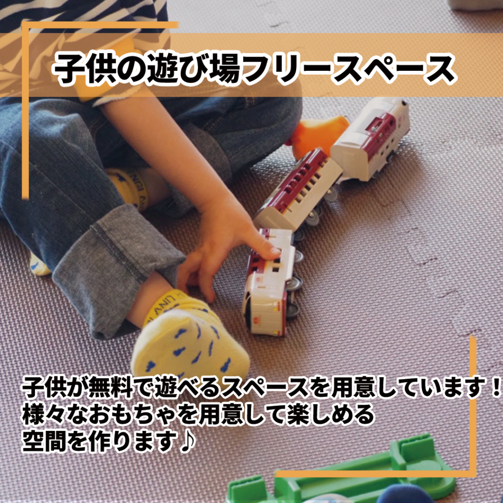 子供が無料で遊べるスペースを用意しています!様々なおもちゃを用意して楽しめる空間を作ります♪卓球も無料でできます!