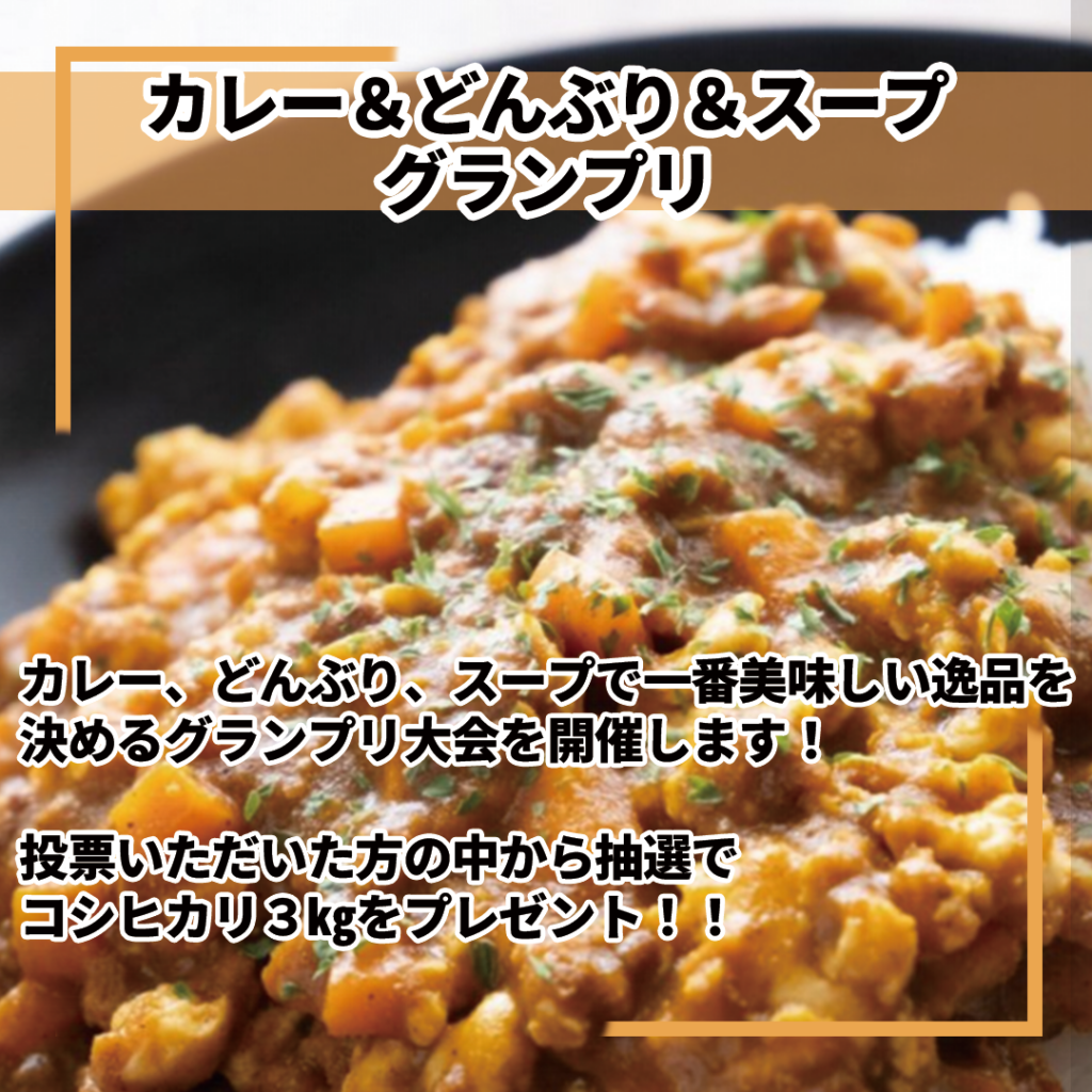 カレー、どんぶり、スープで一番美味しい逸品を決めるグランプリ大会を開催します!